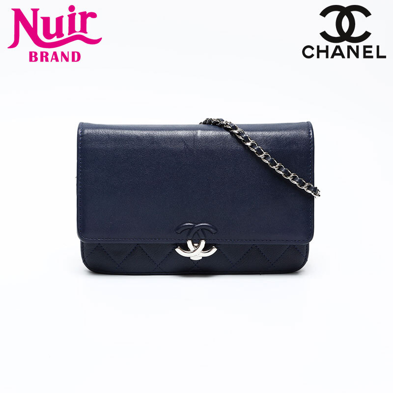 - シャネル CHANEL ショルダーバッグ 25番台 ハーフココマーク チェーン ウォレット 2017 ネイビー