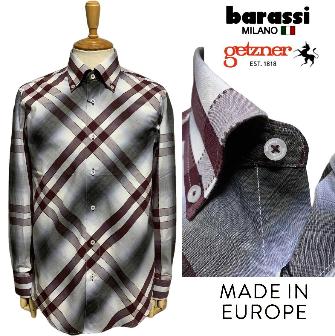 > barassi バラシ オンブレー バイアスウインドペン 長袖ボタンダウンシャツ ボルドー size46 M GETZNER ゲッツナー社製高級欧州生地