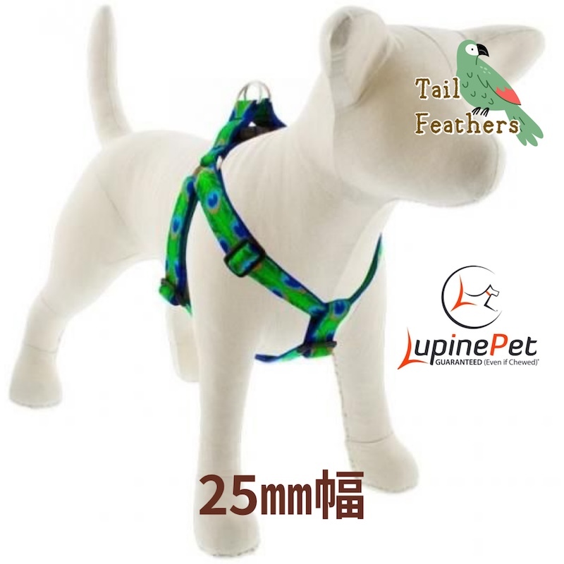 > ステップインハーネス・Lサイズ 25mm幅 テールフェザー柄 48-71cm LUPINEルパイン アメリカ製 軽量 丈夫 大型犬