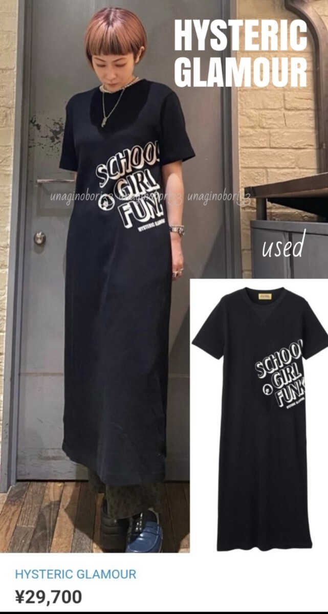 > ヒステリックグラマー ロングワンピース 黒 半袖 HYSTERIC GLAMOUR ヒスガール SCHOOL GIRL FUNK レディース ワッフル生地 ブラック重ね着