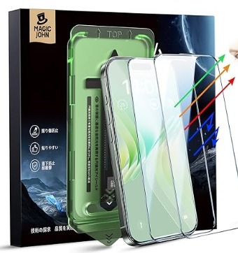 > MAGIC JOHN iPhone 16 Pro Max 用 ガラスフィルム【目の疲れ軽減】2枚セット ブルーライトカットフィルム 耐衝撃 9H硬度 保護フィルム