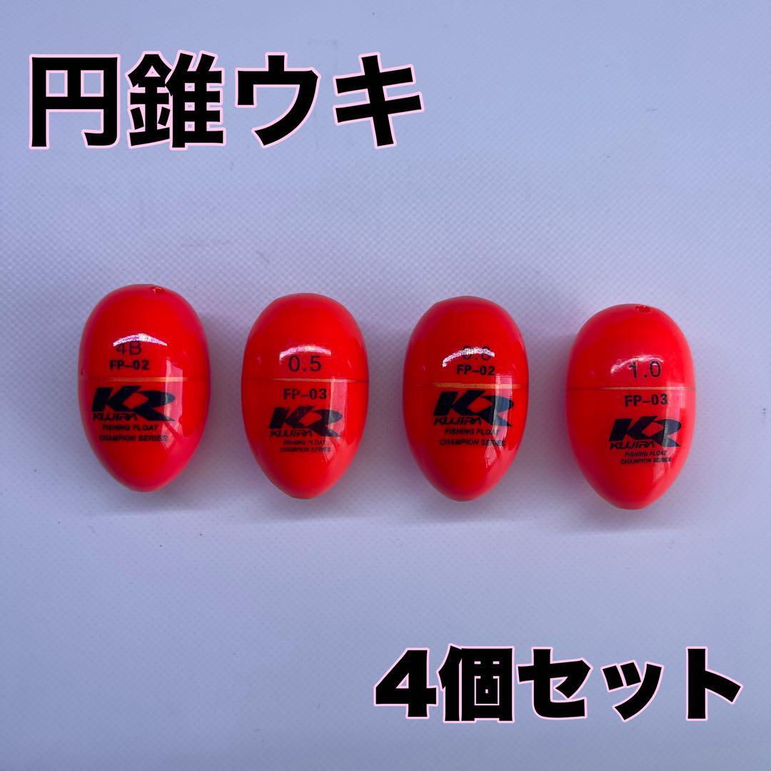 - 円錐ウキ 4B 0.5号 0.8号 1号 4個セット 玉ウキ ウキフカセ 半誘導 赤レッド