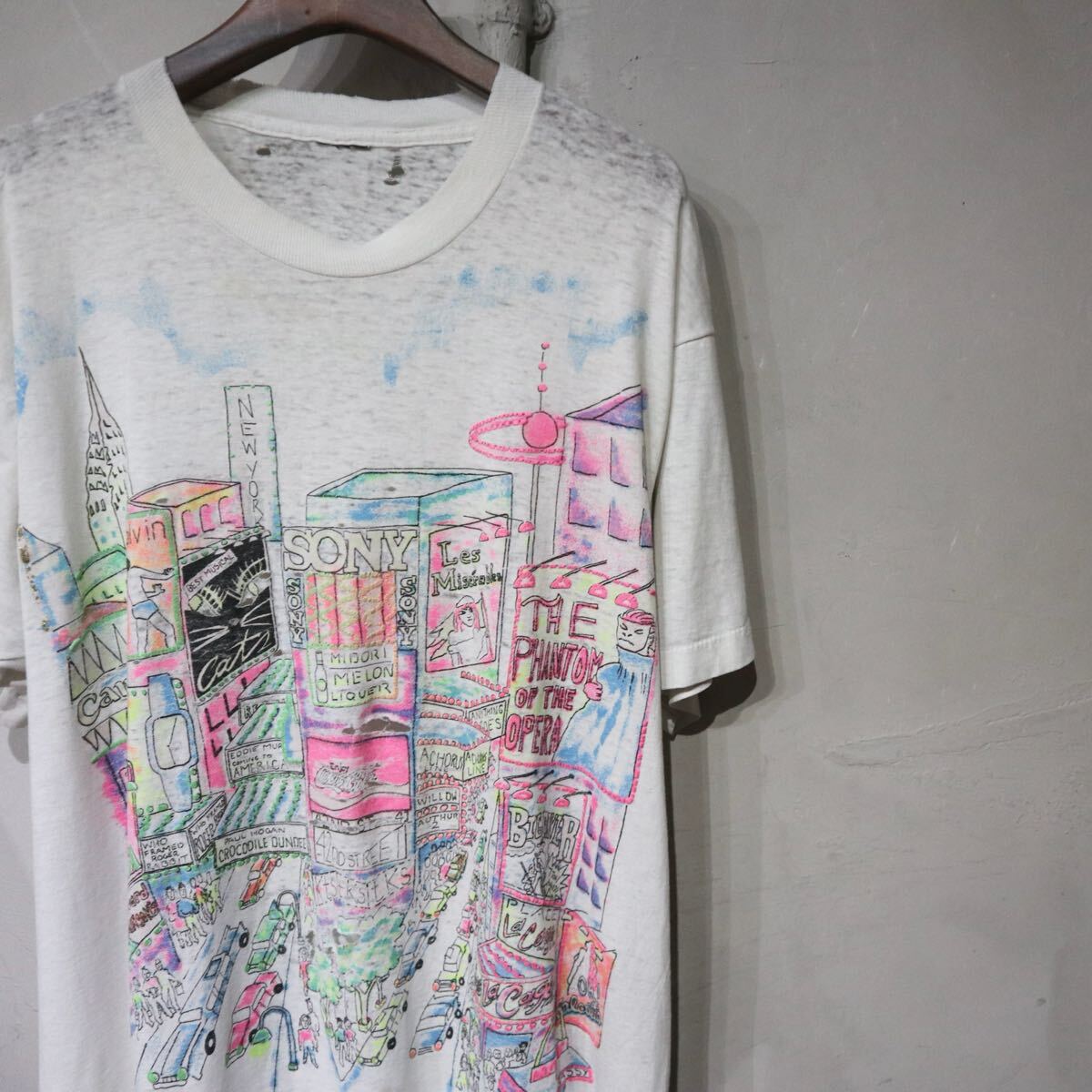 > 【即決】80-90s NEW YORK アート ハンドペイント Tシャツ ニューヨーク SONY CANON ソニー キャノン シングルステッチ ホワイト 白 古着