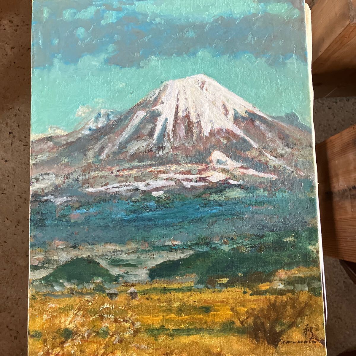 - ★日本画 大山 紅葉 ヴィンテージ レトロ 風景 印字あり レア アンティーク