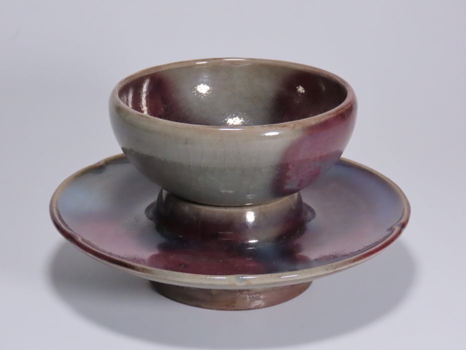 - 中国の陶器.海鼠釉と辰砂釉.煎茶杯.盃洗.使用品.汚れなどありますが傷はありません。
