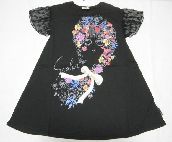 - *送料無料*新品*120*ScoLar KID’S*ブラック*半袖チュニック*お袖チュールレース*スカラーキッズ*スカラーちゃん*黒*