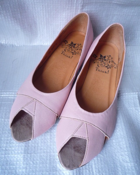 - ◆★★★未使用☆Think☆シンク★オープントゥパンプス★37★23cm~23.5cmくらい★革製★ピンク