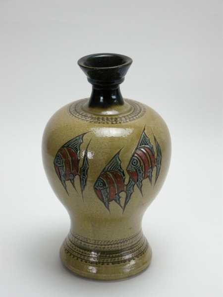 - 【壺屋焼】日展作家 小橋川清次 赤絵魚文タワカサー