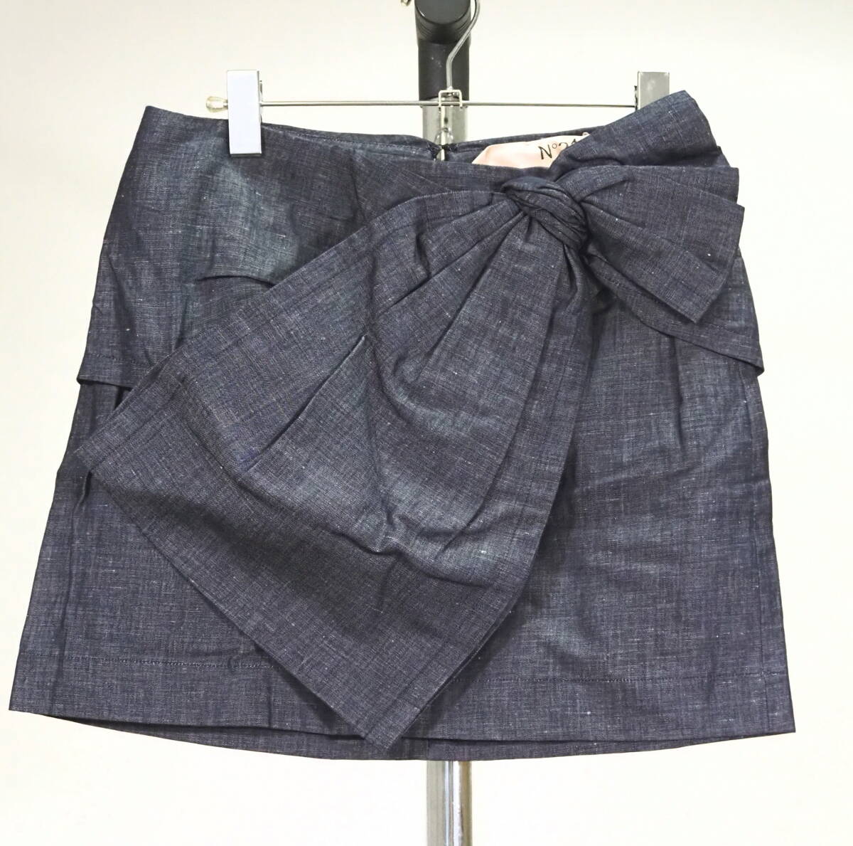 > 美品 定価74580円 N°21 ヌメロヴェントゥーノ 16SSコットンリネンリボンスカート38インディゴ Italy製