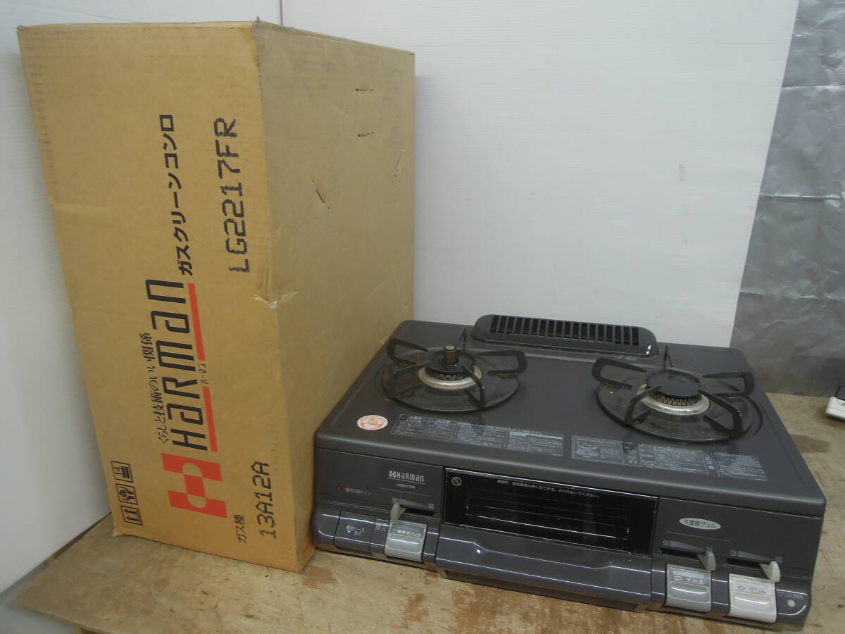 > ♪HARMAN 都市ガス 2口ガステーブル LG2217FR 2001年製 スパーク確認 動作未確認 送料は説明欄※ジャンク品扱い ■160