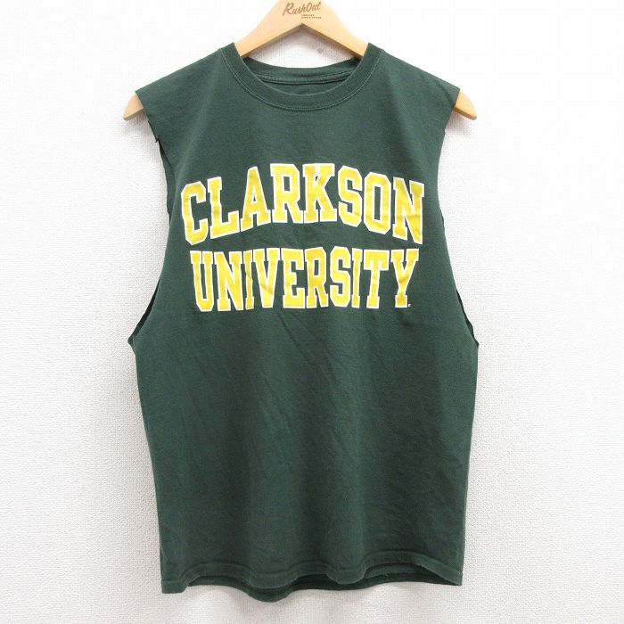 > M/古着 チャンピオン Champion ノースリーブ Tシャツ メンズ クラークシン 大学 コットン クルーネック 緑 グリーン 25jul12 中古