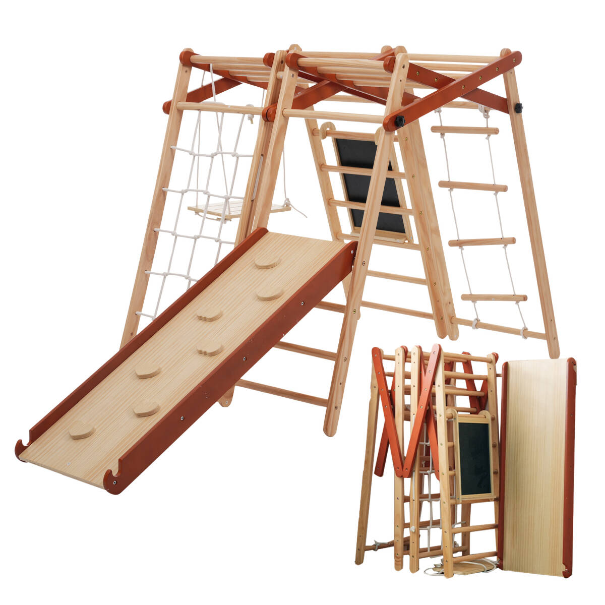 - ジャングルジム 8in1 天然木 ブランコ すべり台 滑り台 折りたたみ 黒板付き 耐荷重100kg コンパクト 多機能 木製 屋内 室内用 大型遊具