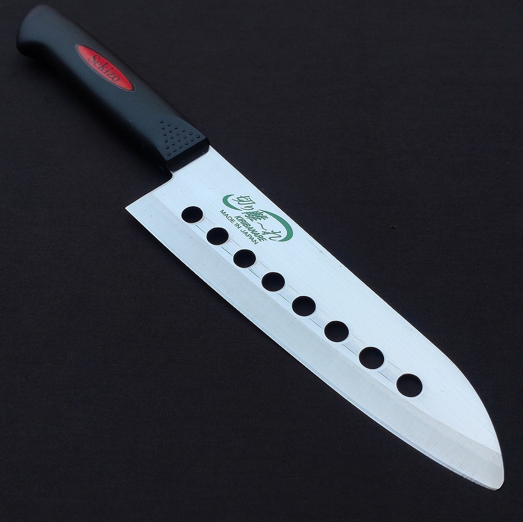 - 未使用 三徳包丁 穴あき包丁 切り離れ KIRIBANARE Sekizo 刃長約167㎜ 両刃 抗菌ハンドル 万能包丁 庖丁 Japanese Kitchen knife 【6227】