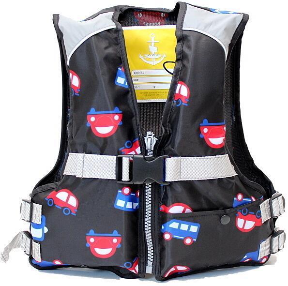 - L ブラック KURUMA 子供用 ライフジャケット パターン ジュニアフローティングベスト ファインジャパン 笛付 FJ6153