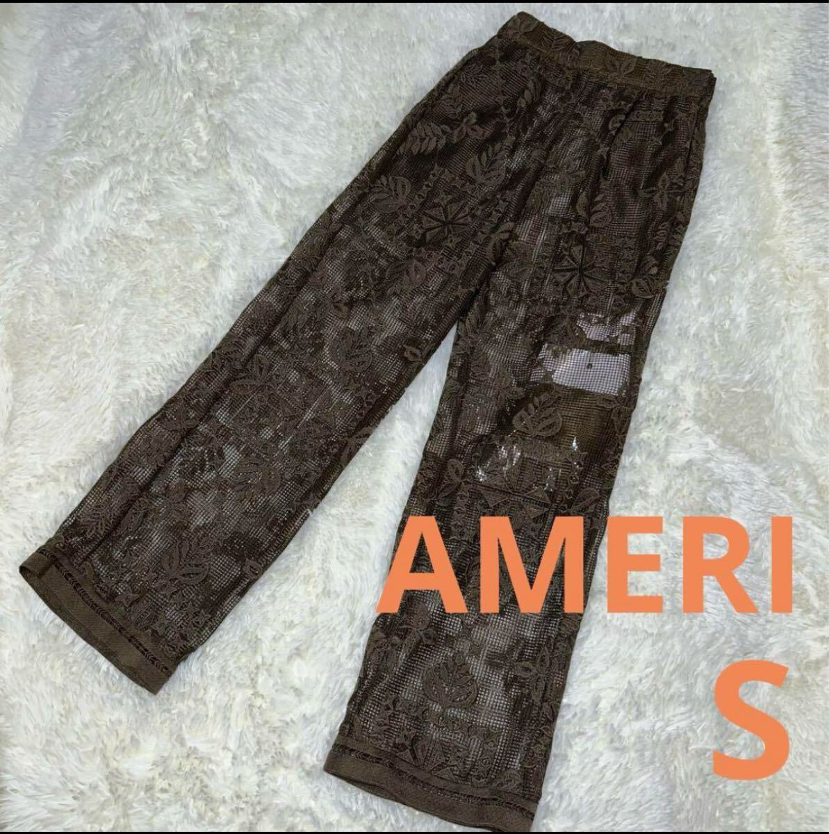 - 新品 AMERI BLOCK LACE STRAIGHT PANTS 、おしゃれレース柄 透かしパンツ、S、ブラウン