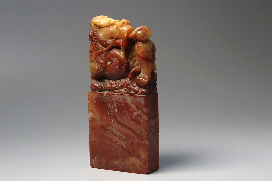 - 【天海】 SY182 文房四宝 篆刻印材 その9 龍宝珠紅石扁印章 静裏乾坤闊 122g