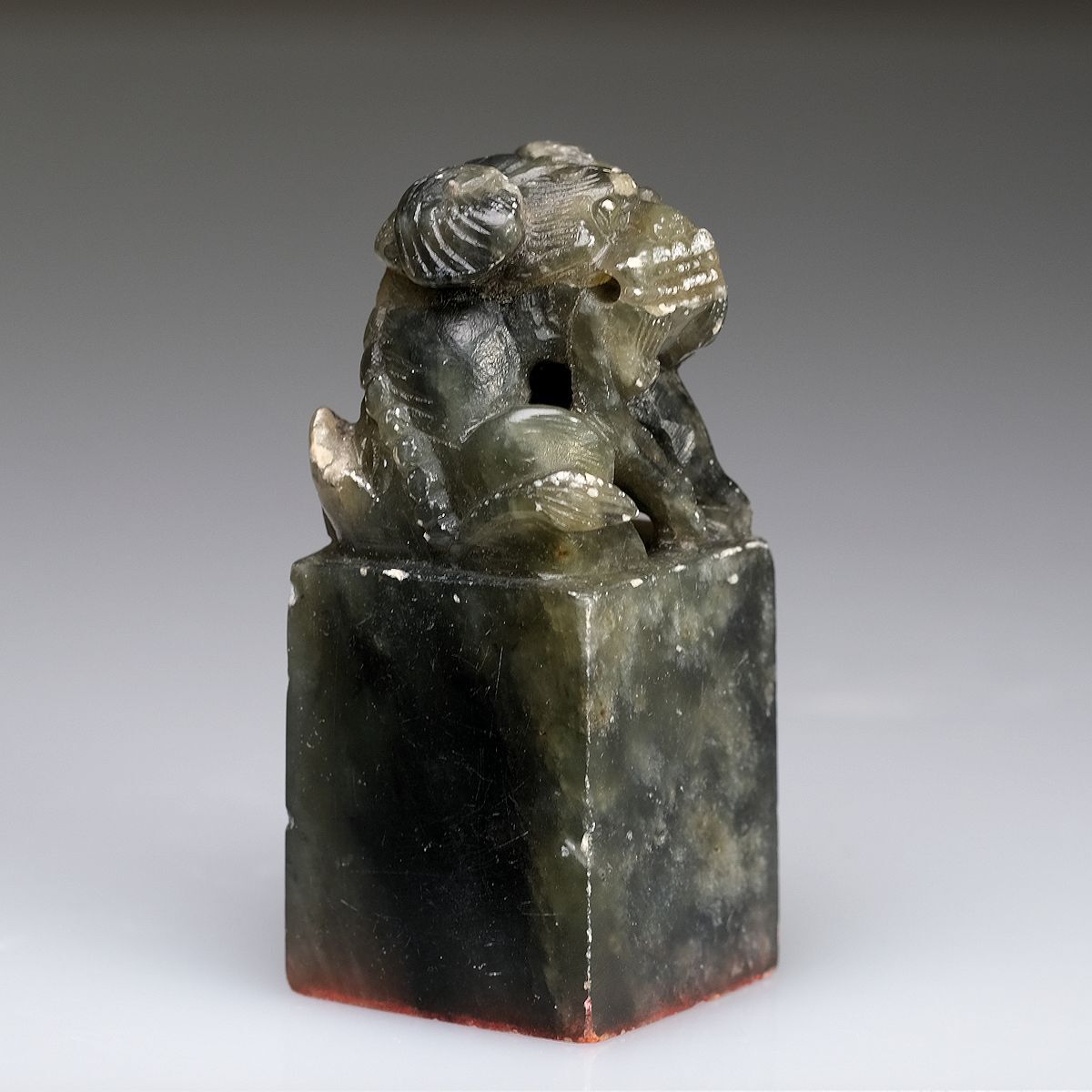 - 【天海】 SY188 文房四宝 篆刻印材 その15 緑石獅子鈕方章印 「少蔵翰集」 96g