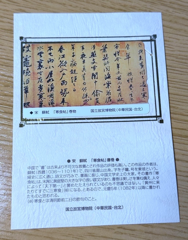- 【未使用】レア NTT テレカ50度数 寒食帖 蘇軾 宋代 書道 傳世名筆 国立故宮博物院 監修の高精細印刷 台北 金箔装飾付 文化的価値
