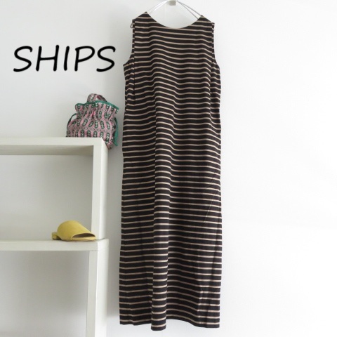 - 送料込 匿名配送 SHIPS シップス ボーダー ワンピース ノースリーブ