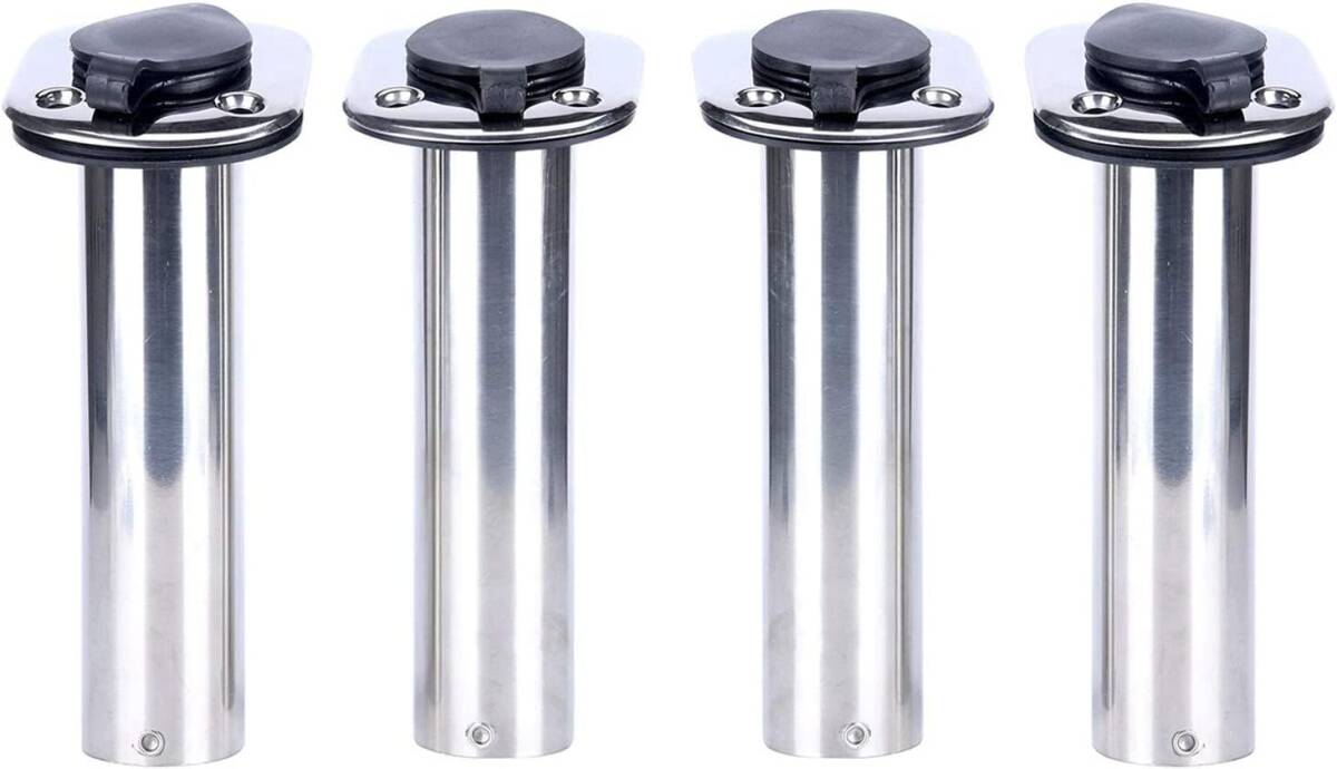 - 船ロッドホルダー ステンレス製 ロッドホルダー 4点セット 船べり埋め込みタイプ 内部硬質ガード