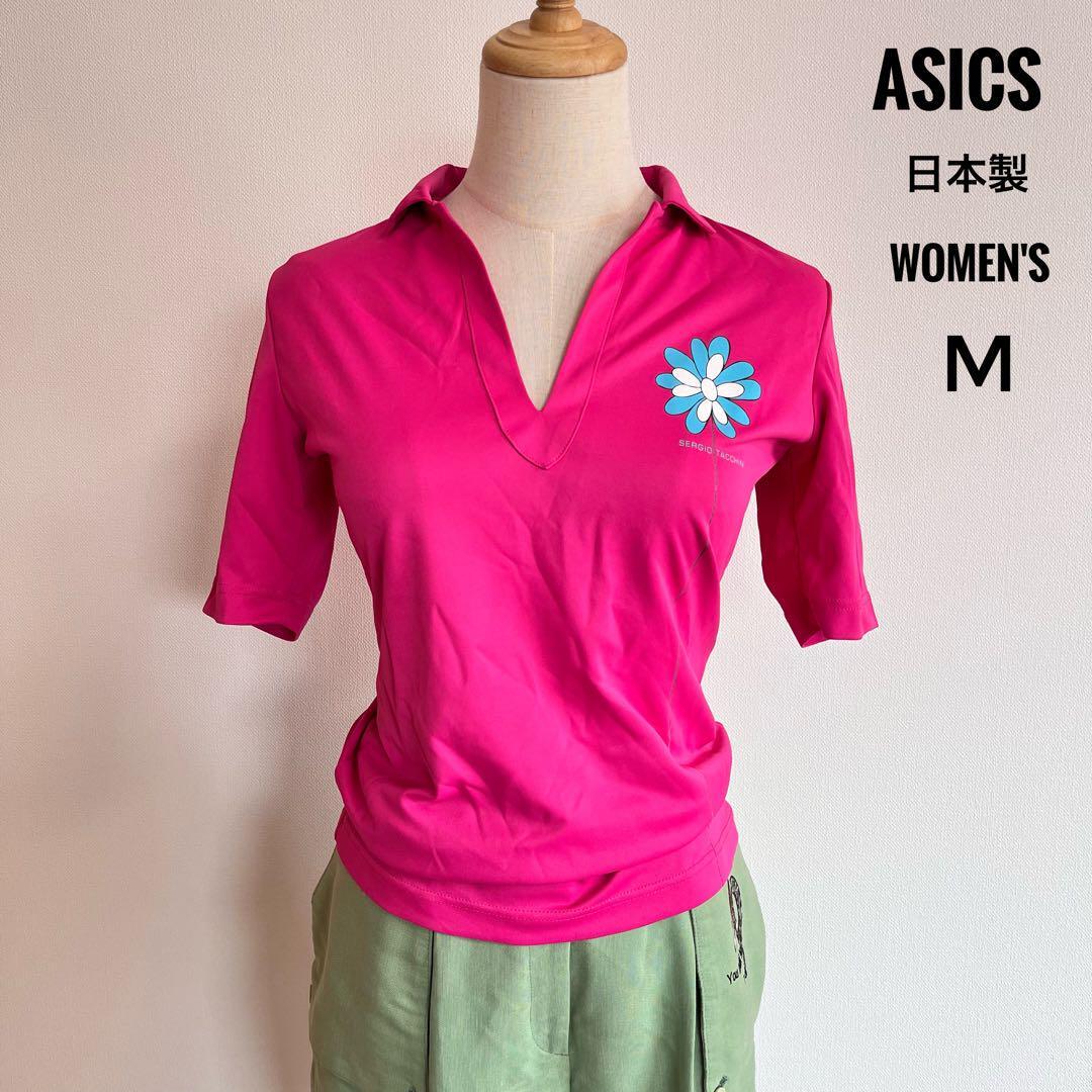 - アシックス Sergio Tacchini 日本製 レディース 吸汗速乾 冷感 Vネック 半袖ポロシャツ M ピンク