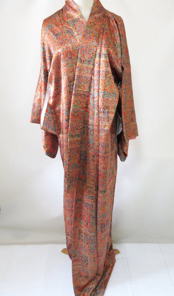 > 51-2.和装 小紋 袷 総柄 和服 身丈約153.5㎝ しつけ付き オレンジ系
