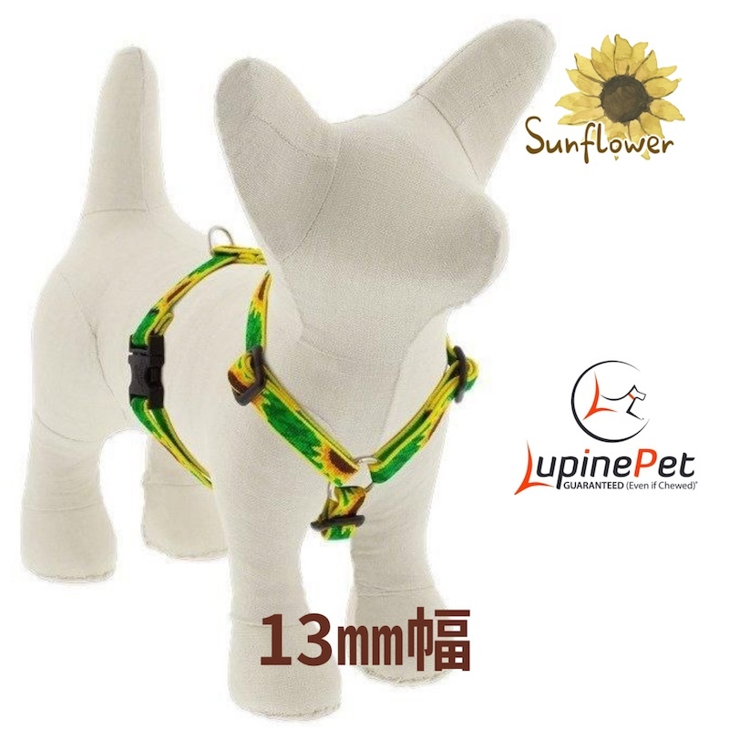 > サンフラワー柄・ローマンハーネス・小・胴回り23-35cm・13mm幅 LUPINEルパイン アメリカ製 軽量 丈夫 小型犬