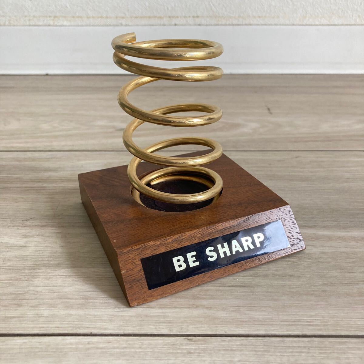 - アメリカ製ビンテージ ウォルナット無垢×スチール金メッキ バネ型 ペンスタンド 鉛筆削り付