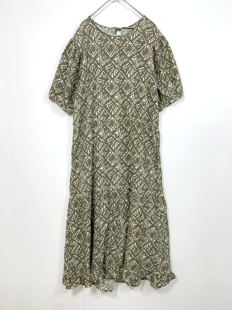 > ゆうパケットOK 美品 LOWRYS FARM ローリーズファーム ボタニカル パフスリーブ ワンピース sizeF/カーキ ■◆