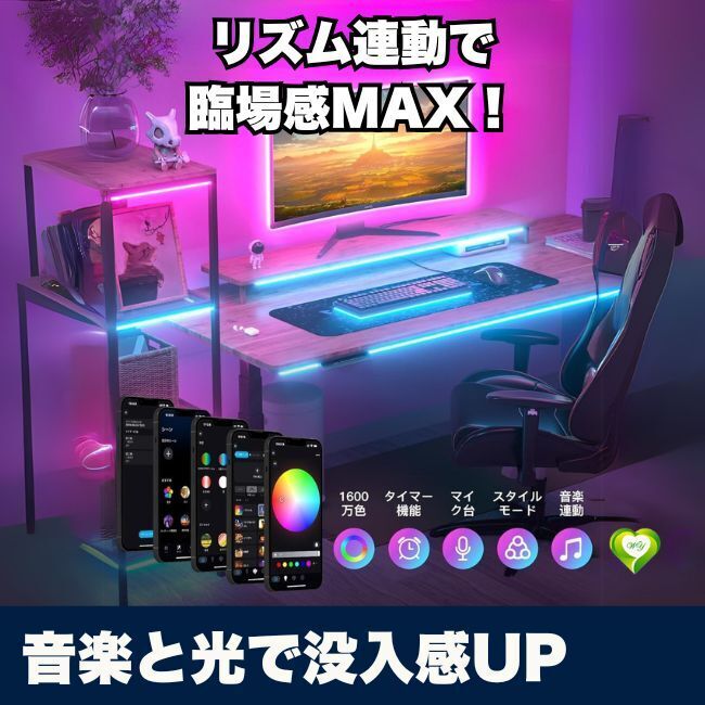 - 【音楽と光で没入感UP】LEDテープライト 3M RGB USB式リモコン付 音楽連動 間接照明 テレビバックライト 人気 おすすめ