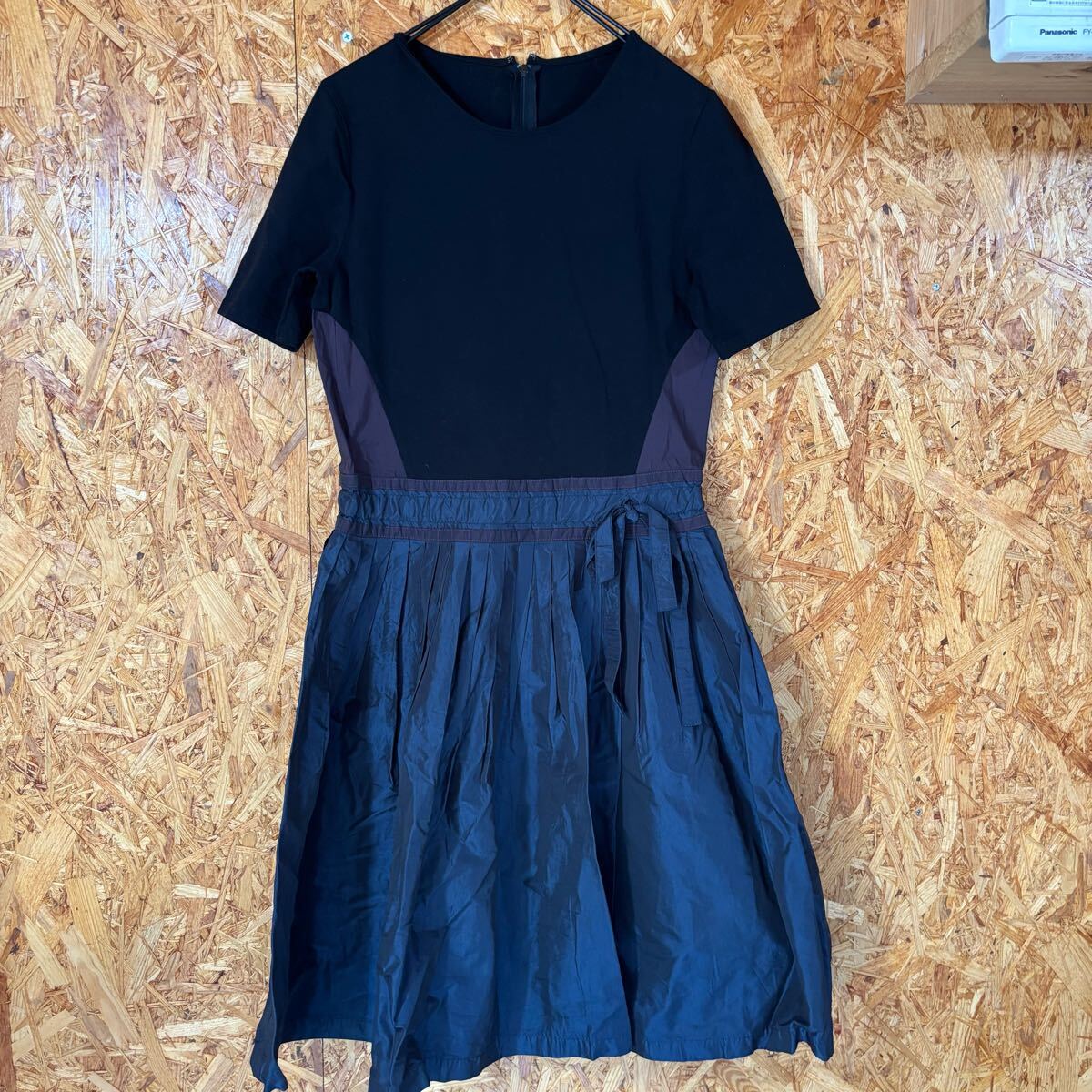 - 美品 MONCOEUR 日本製 半袖ワンピース ドッキングワンピース ひざ丈ワンピース 生地切替 レディース 4748