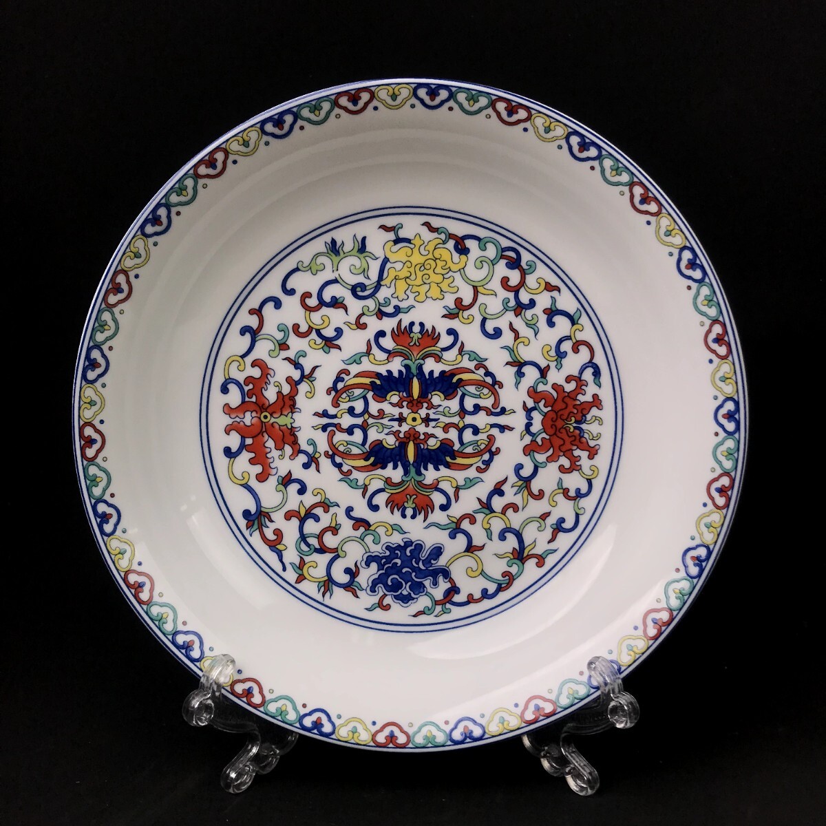 - 中国 古美術 色絵 大皿 古玩 唐物 清時代 粉彩 中国古玩 飾り皿
