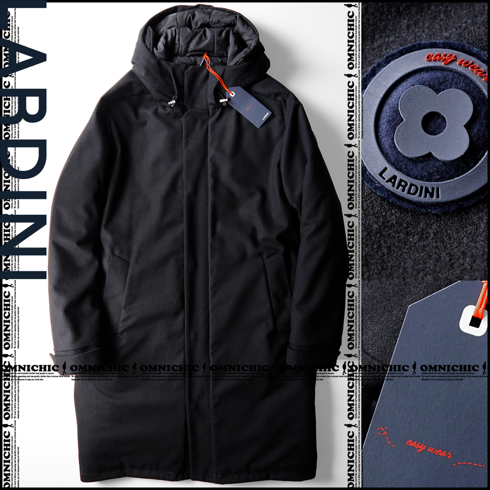 > 訳あり■新品17万【LARDINI】ラルディーニ極上EazyWear/イージーウェア/ロゴパッチキルティング中綿フィールドフーデッドロングコート50