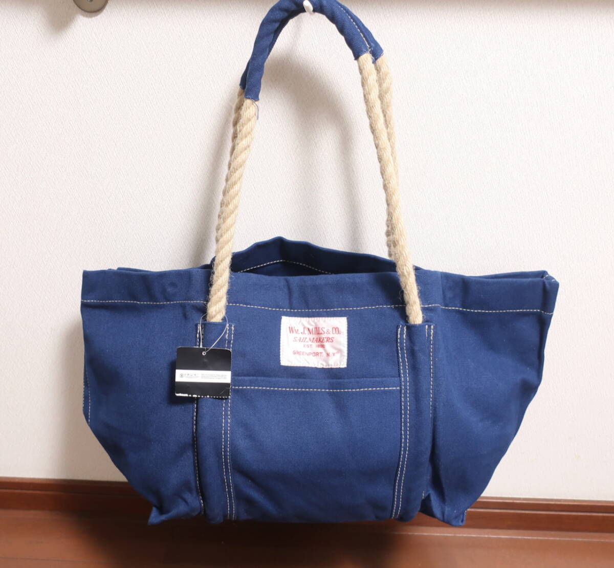 - ウィリアム ジェイ ミルズ★帆布キャンパストートバッグ《紺色》ロープハンドル未使用