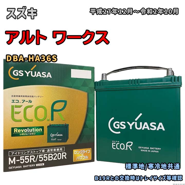 > バッテリー GSユアサ ER-M-55R/55B20R スズキ アルト ワークス DBA-HA36S 平成27年12月~令和2年10月 5MT 充電制御車 M-42Rタイプ 353