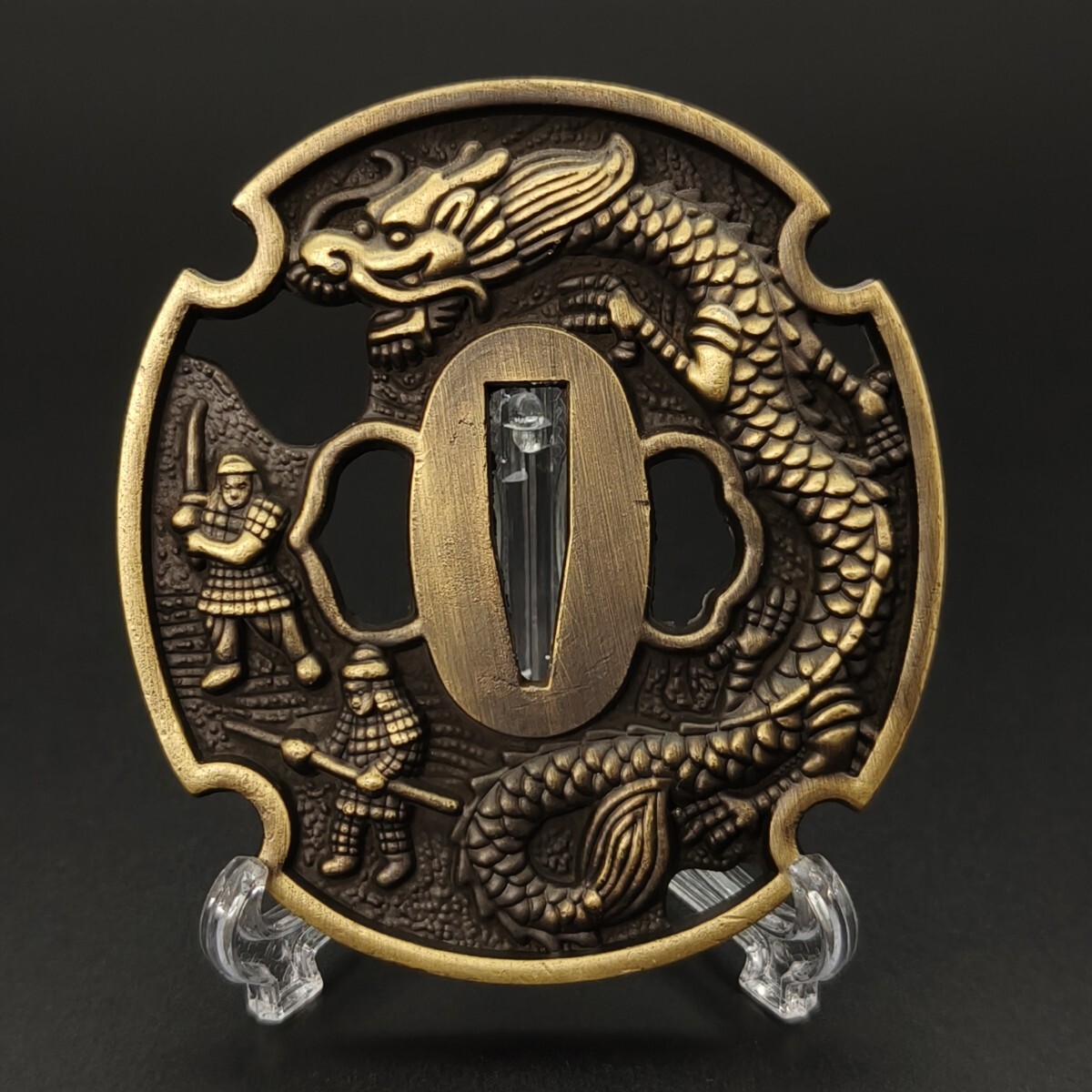 - GK14 日本刀装具 刀鍔 侍と龍の図 合金製 刀剣美術 武道具
