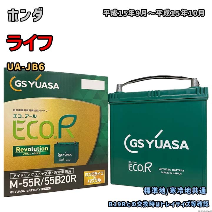 > バッテリー GSユアサ ER-M-55R/55B20R ホンダ ライフ UA-JB6 平成15年9月~平成15年10月 4WD 充電制御車 M-42Rタイプ 334