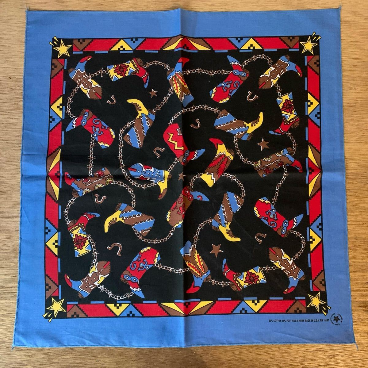 > 送料無料 Vintage バンダナ ウエスタンブーツ柄 ハンカチ アメリカ仕入れ コーデ カントリー アメカジ おしゃれ 雑貨 ヴィンテージ A1826
