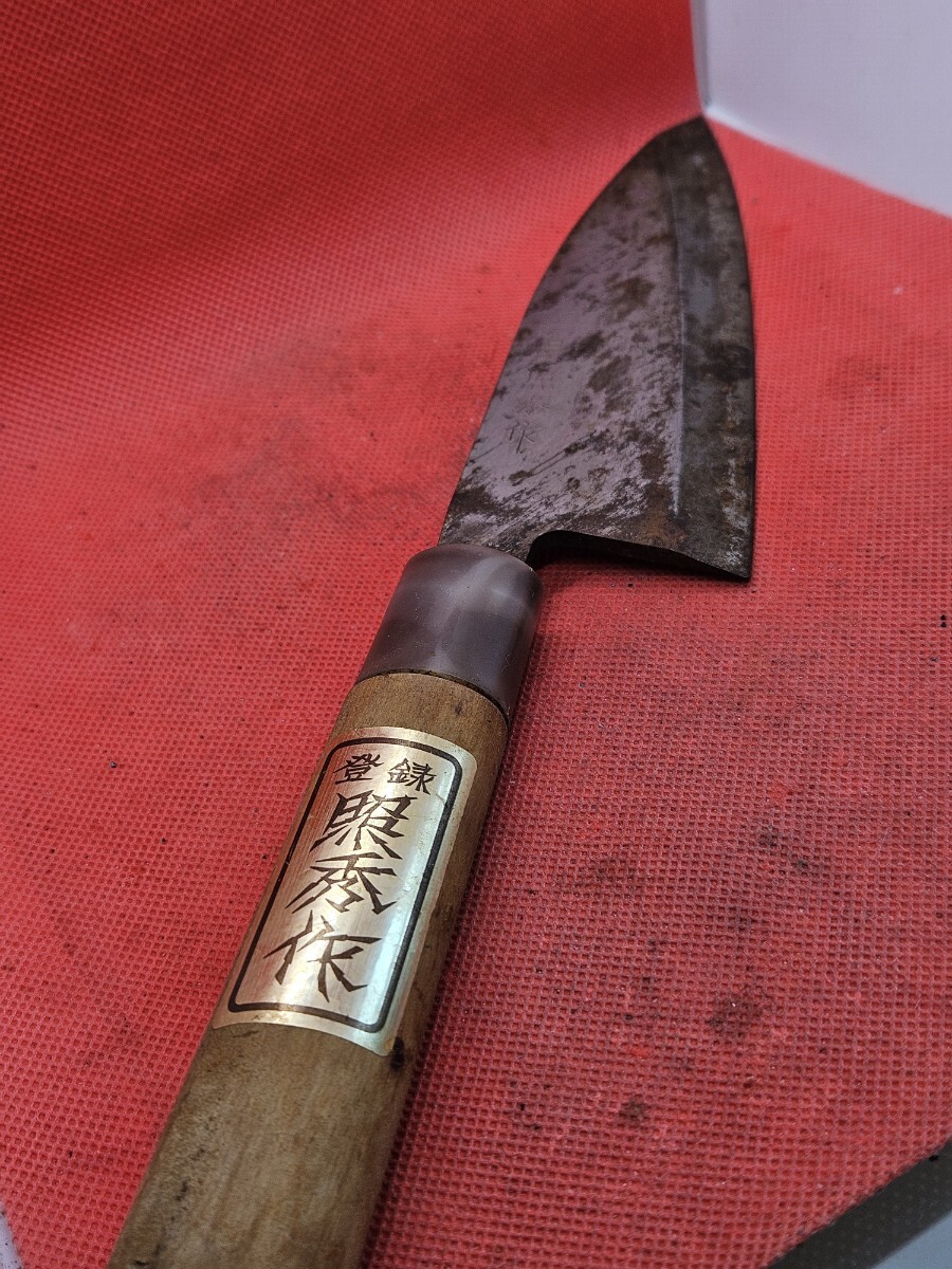 - 中古 出刃包丁 登録 照秀 作 全長28.8センチ 刃渡り15.6センチ 厚3.5ミリ キッチン用品 料理道具 G2729