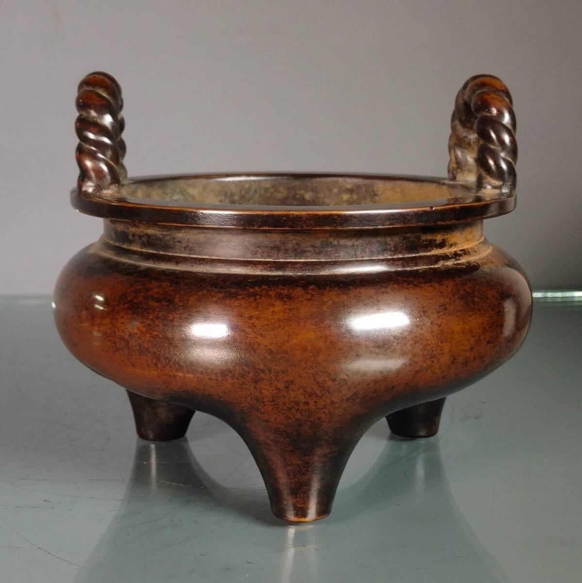 - 唐物 大明 宣德年制 紫銅 三足香炉 置物 香道具 銅製 銅器 古美術品 時代物 中国古玩 骨董品 D67