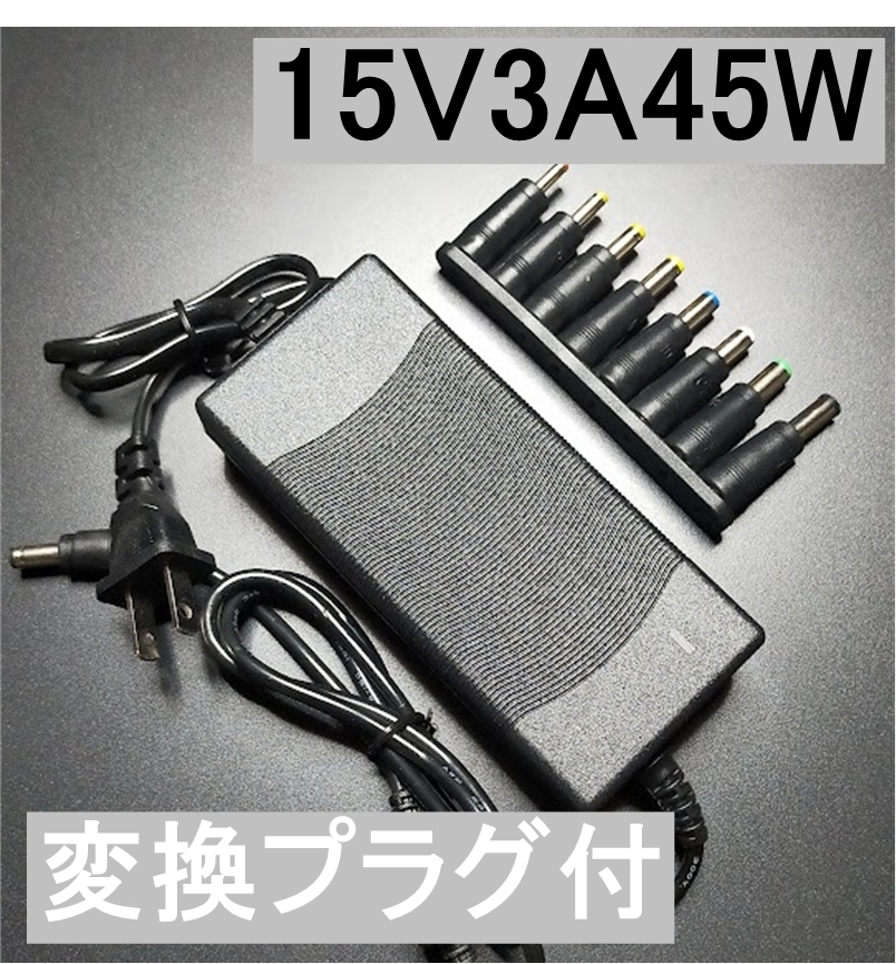 - 変換プラグ付 ACアダプター 15V3A プラグ5.5×2.5/2.1mm (15V 2.5A、2A) AC/DCアダプター スイッチング電源