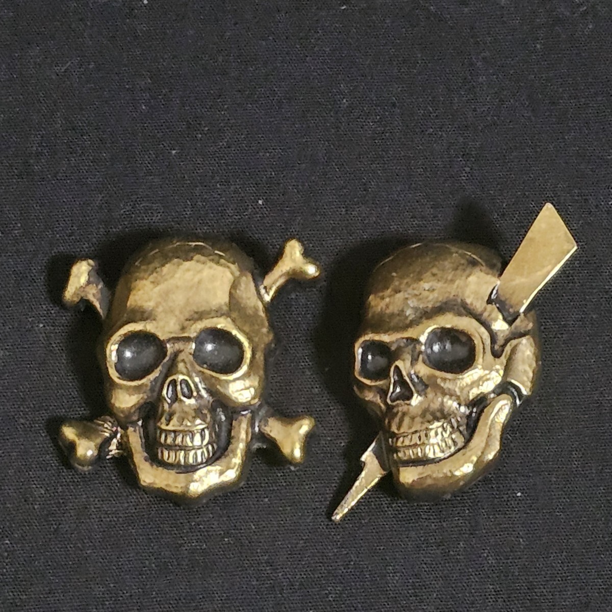 - ドクロ バッジ 2種セット カラー ゴールド 髑髏 骸骨 ガイコツ スカル バイカー ロック コスプレ