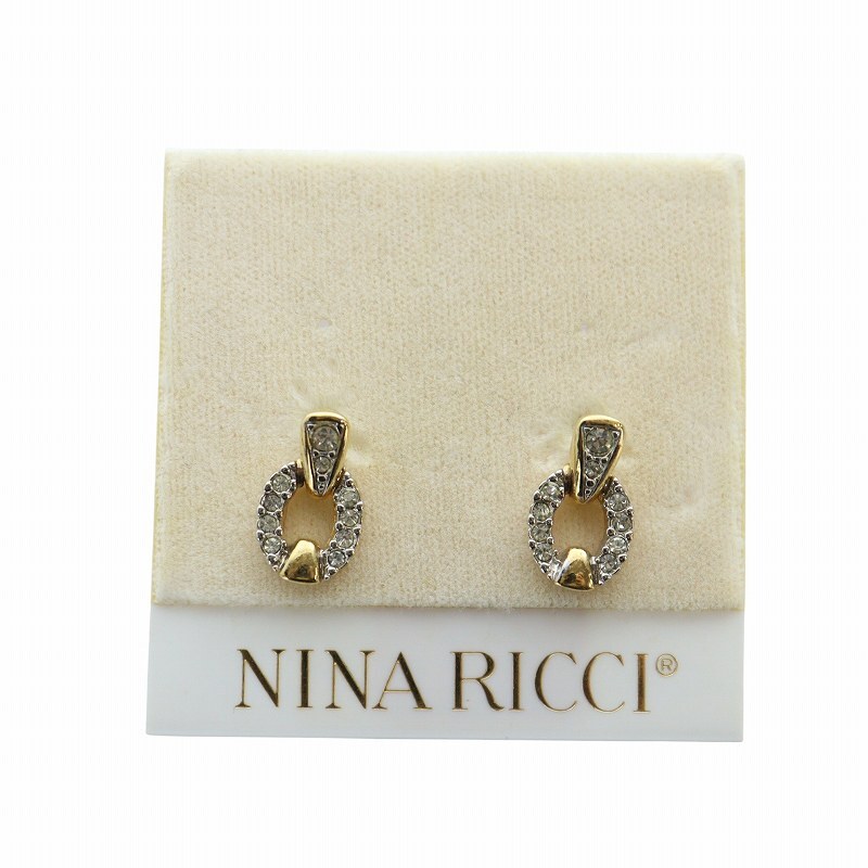 - ニナリッチ NINA RICCI ピアス アクセサリー 両耳用 ロゴ ラインストーン ゴールド色 ■GY18 /MQ レディース