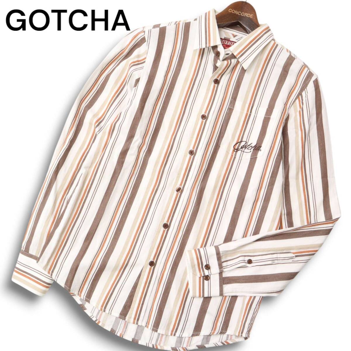 GOTCHA ガッチャ 通年 ロゴ刺繍★ マルチストライプ 長袖 シャツ Sz.S メンズ サーフ拍卖