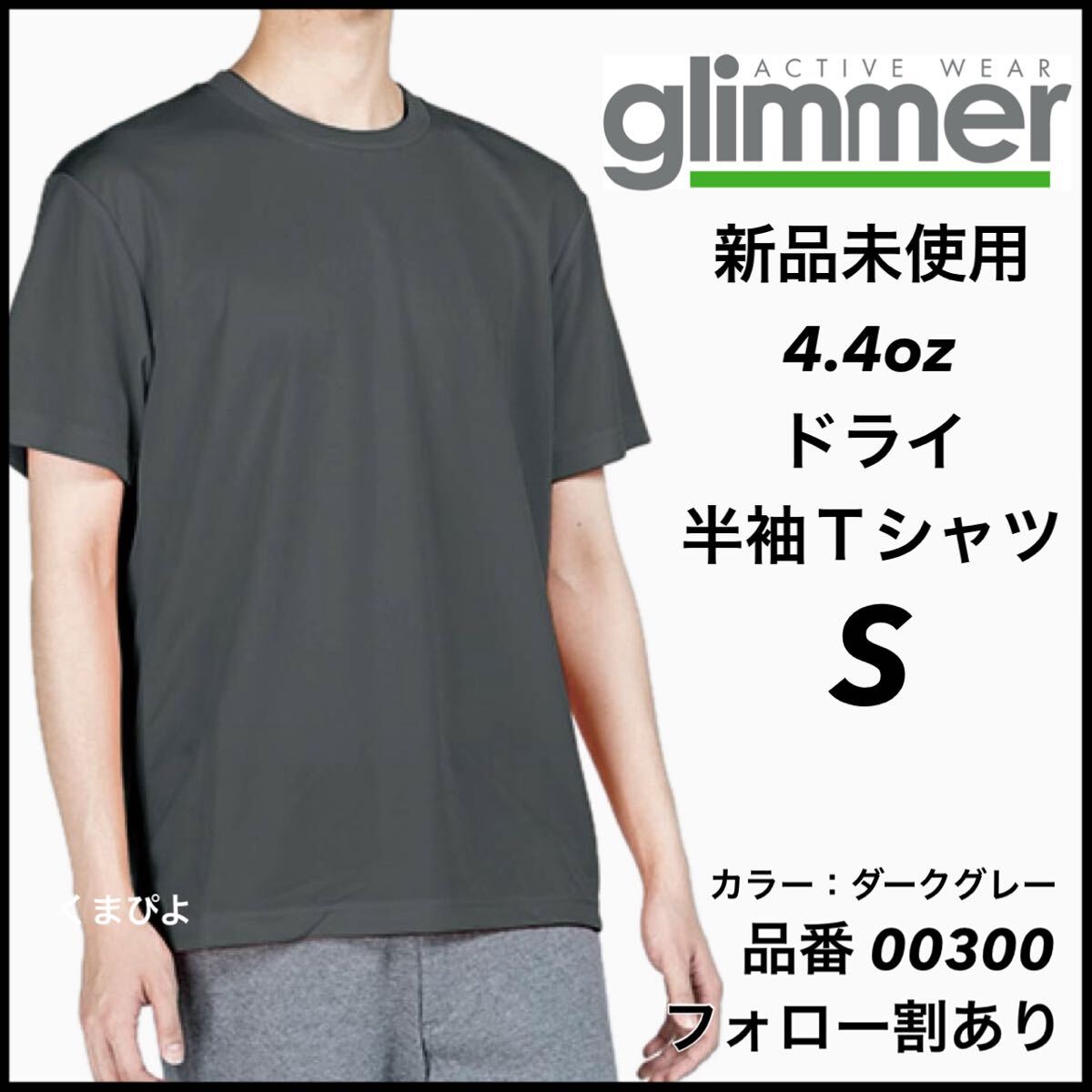 > 新品未使用 グリマー 4.4oz ドライ半袖Tシャツ ダークグレー Sサイズ スポーツ トレーニング 吸汗速乾 ユニセックス glimmer