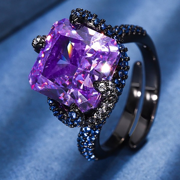 - 女性のためのレトロなアメジストリング、12x12mm、残り時間4日までに最初に入札すると開始価格で購入可能 Kn
