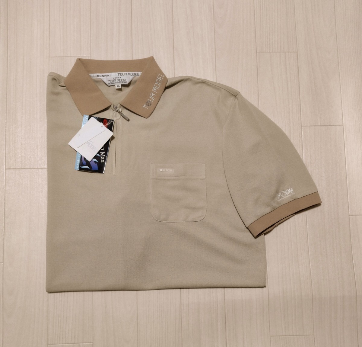 > 【希少特大サイズ】新品タグ付 HONMA GOLF 日本製 ポロシャツ LLサイズ du pont 本間ゴルフ ベージュ