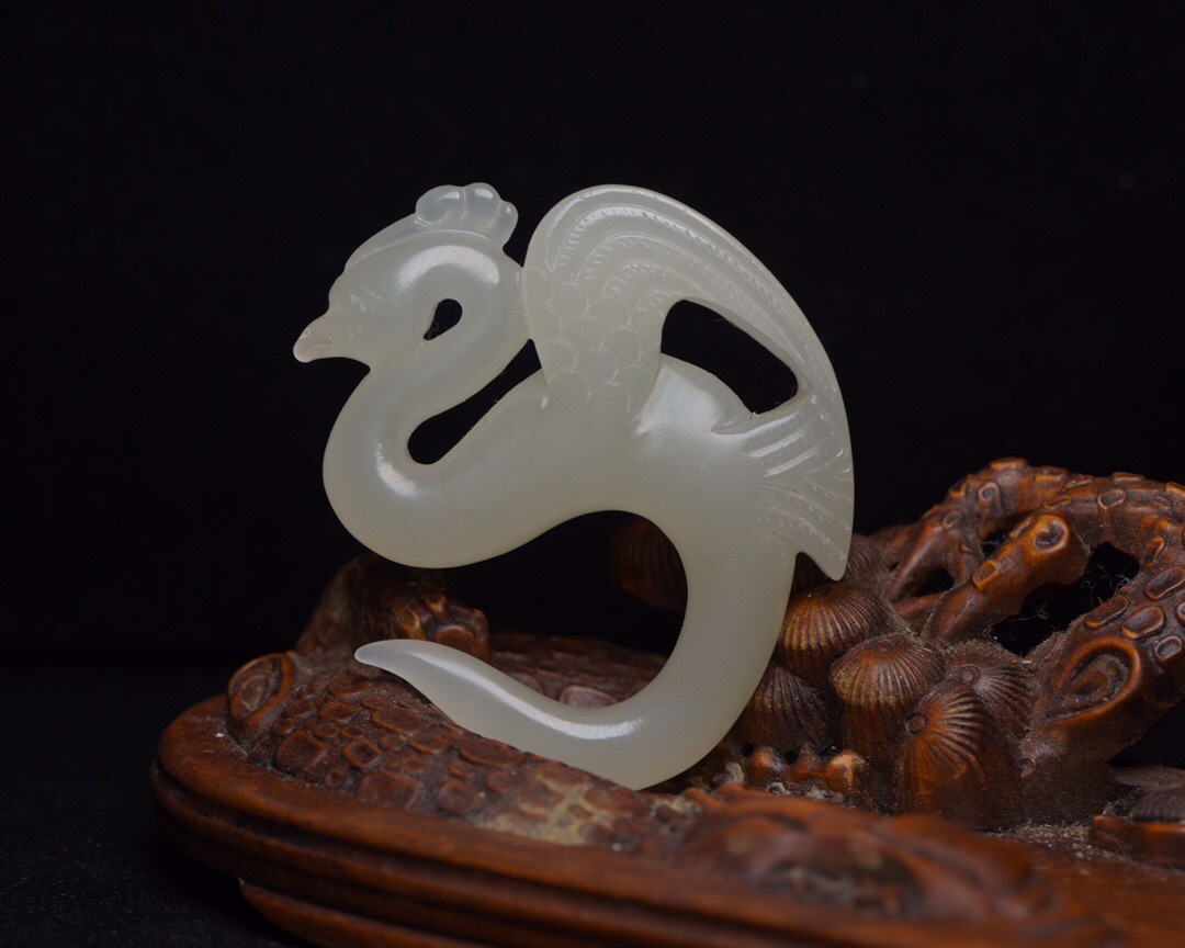 - 『館蔵珍品 和田玉製 細密彫 玉鳥 置物 賞物』稀少珍蔵品 古賞物 貴重物品 収蔵品 中国古美術 時代物 古董品
