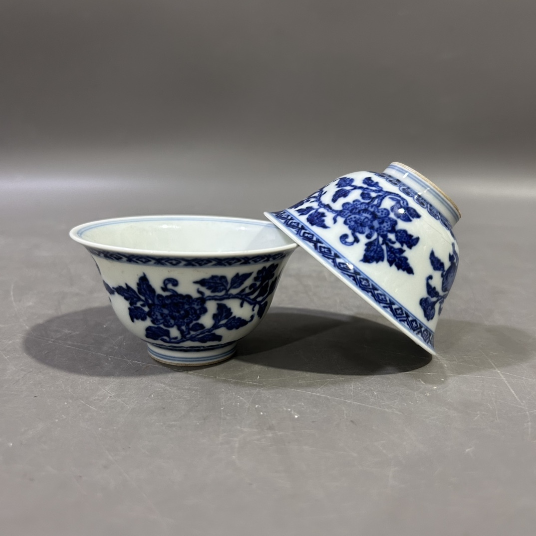 - ■BC142■大清雍正年制銘 青花三果紋杯2客 古玩 唐物 古陶磁器■
