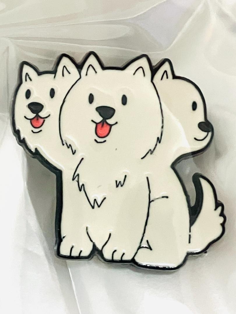 - 新品 送無★☆ピンバッジ もふもふ 番犬 ケルベロス☆★カワイイ オシャレ 犬 わんこ dog わんちゃん いぬ 秋田犬 サモエド